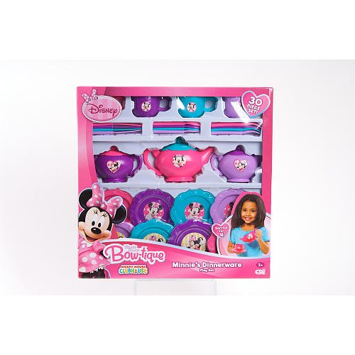 Create a bowtastic tea party with this 30 piece Minnie Mouse dinnerware set This fun tabletop set serves up to four making a perfect addition to your childs playhouse Your little one will enjoy having dinner with her guests with the new Mickey Mouse Clubhouse Minnies Dinnerware Set Create a bo Read More..
