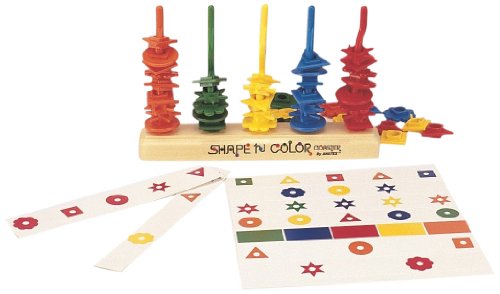 3 years up Wooden coaster includes 50 fun- to- manipulate pieces in 5 shapes Stack them on the 5 colored dowels for classification logic sorting matching recognition and direction- following activities Includes 18 pattern cards 10 x 2 x 6 12 Learning is fun with the Shape N Color Co Read More..